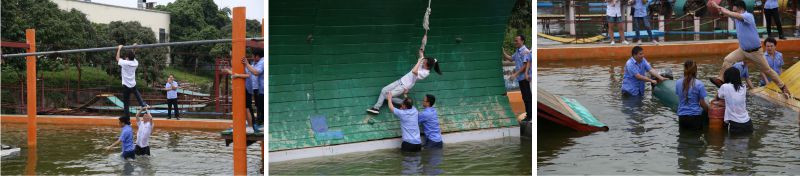 在火线穿越、高空铁索、孤岛求生、水上极限挑战等活动上进行了比拼。活动中大家强烈意识到,团队成功是个人成功的基础;个人成功必须建立在团队其他成员的共同努力与共同支持的基础之上;水上极限挑战时每个成员必须胆大心细,敢于挑战,相互鼓励,协同合作,勇于奉献、战胜恐惧;此次活动是集速度与激情、是集坚强意志与协作能力的竞赛,同时也是一次品德与情操大的比拼。